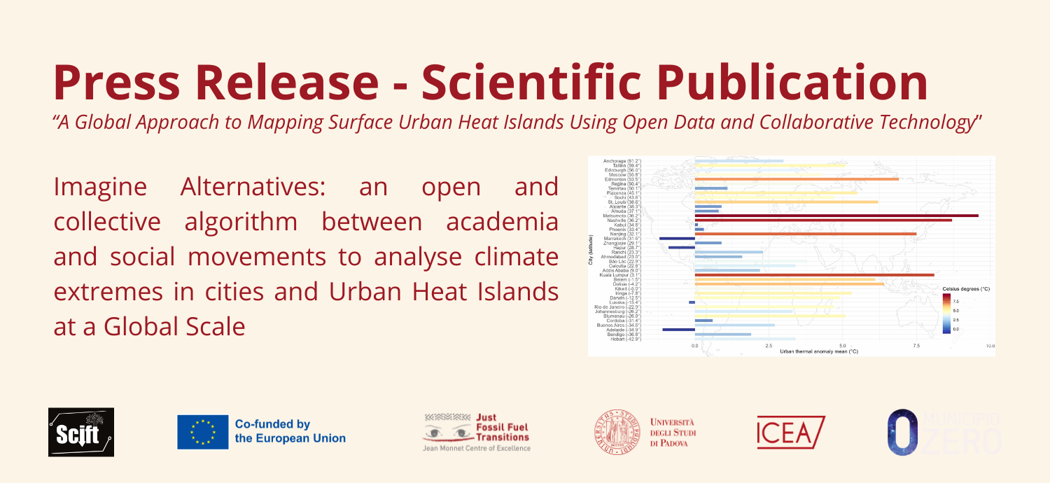 The study—developed through collaboration between the SCIFT Laboratory (Officina di Scienza, Climattivismo, Immaginazione, Formazione e Tecnologia), researchers from differen universities (Bologna, Torino, Padova, Parigi) and institutions (ENEA), and the Jean Monnet Centre of Excellence on Just Fossil Fuel Transition at the University of Padua—introduces the first global open-source algorithm for analysing urban heat islands and climate extremes in cities.